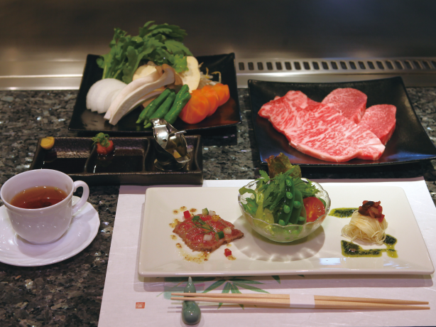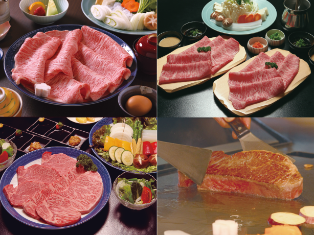 その柔らかい肉質と豊かな風味はまさに「味の芸術品」との評価を頂いており、鉄板焼ステーキコーナー、炭火焼肉コーナーをはじめ、すき焼きやしゃぶしゃぶなど美味しい牛肉をごゆっくりお召し上がりいただいています。
