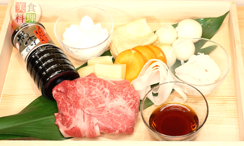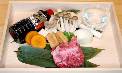 4)【すき焼き】材料を切り鍋に入れます。