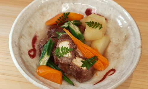 絹揚げ牛モモ巻き煮
