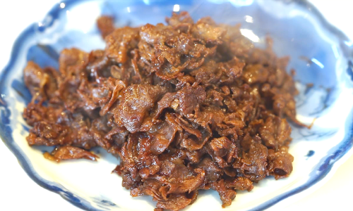 5)すね肉の佃煮を加えます。