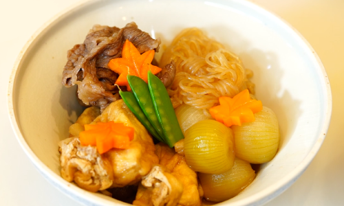 福寿館の代名詞「すき焼き」のアレンジ料理をご紹介します。この茶碗蒸しのためにすき焼きを作るもよし、少し残しておいて翌日のご馳走にするもよし!美食料理人盛田さんの「卵液黄金比」も必見です!