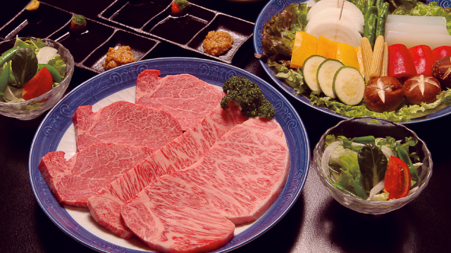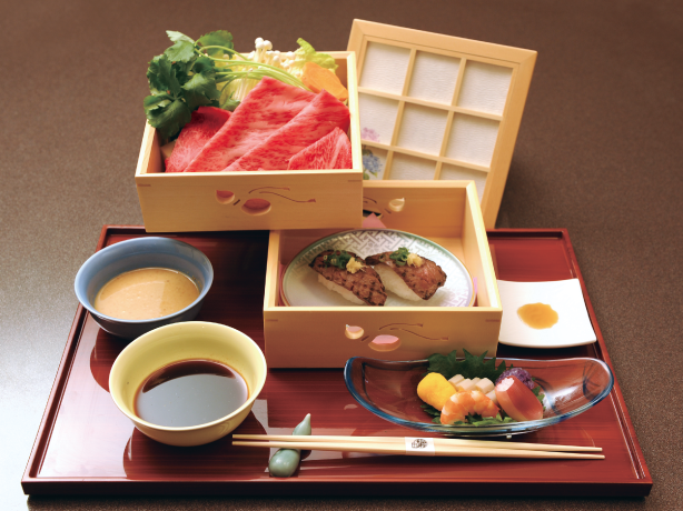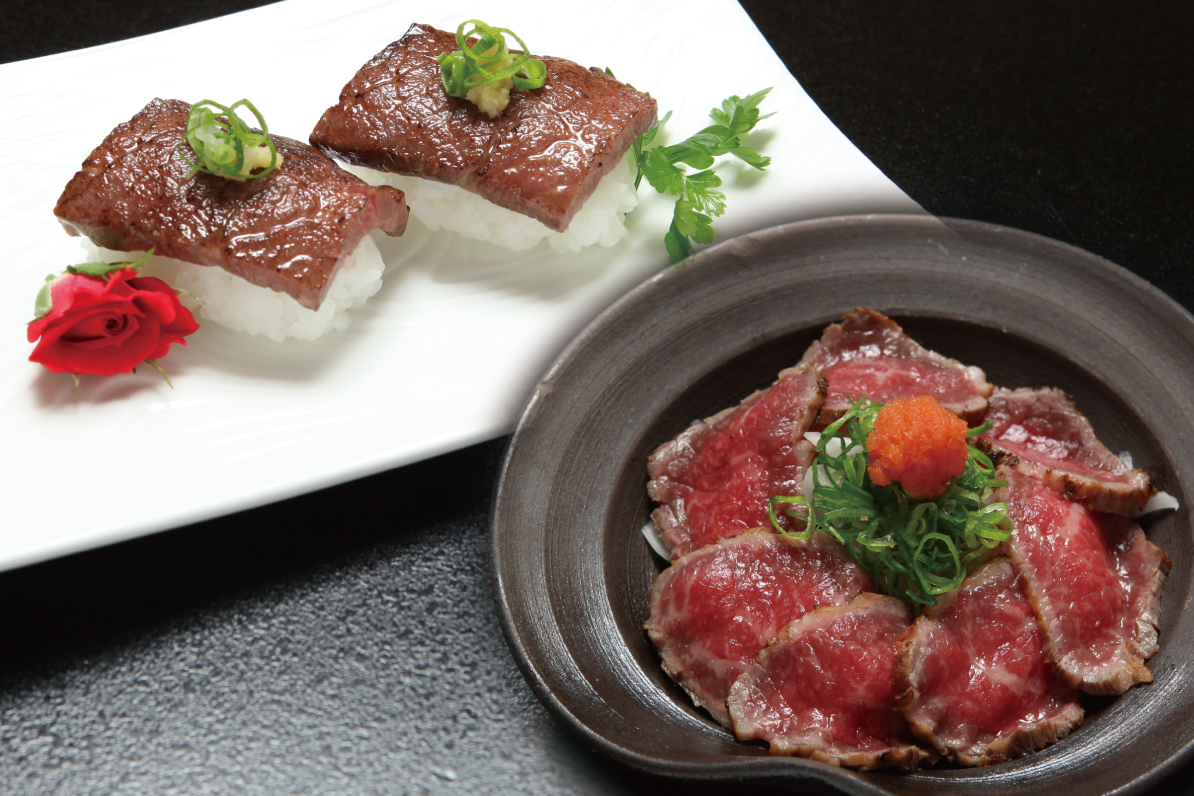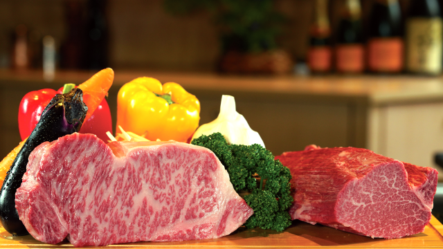 その柔らかい肉質と豊かな風味はまさに「味の芸術品」との評価を頂いており、鉄板焼ステーキコーナー、炭火焼肉コーナーをはじめ、すき焼きやしゃぶしゃぶなど美味しい牛肉をごゆっくりお召し上がりいただいています。
