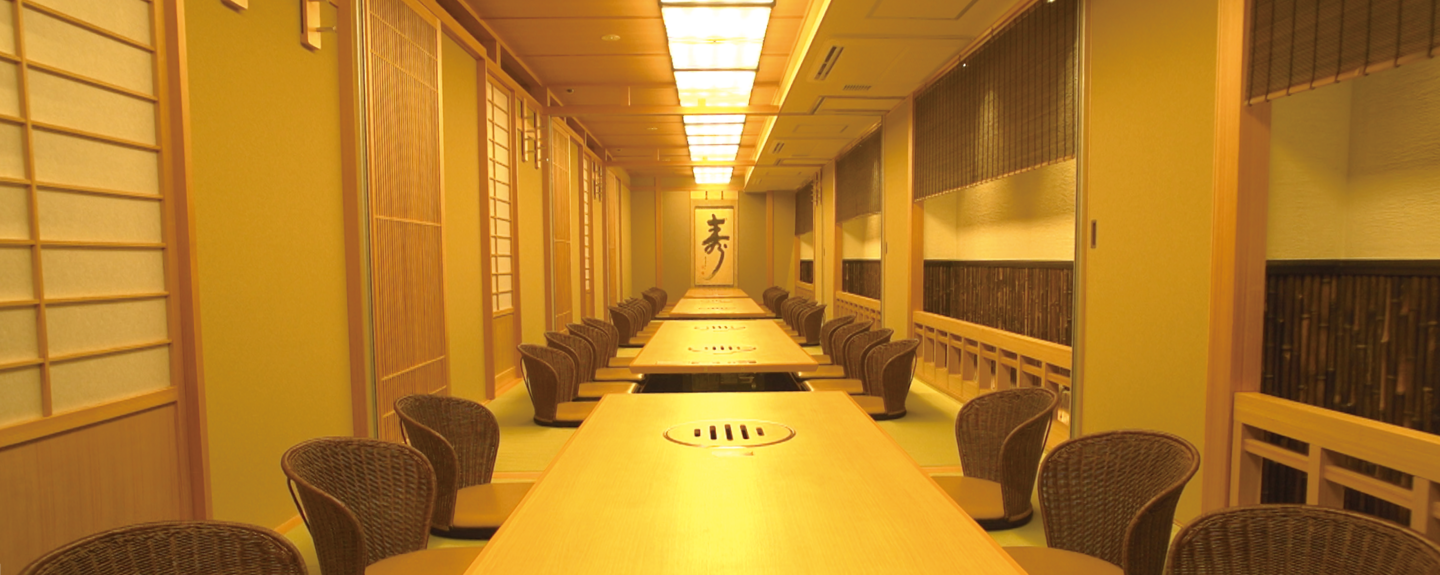 座敷は最大32名様までお入り頂けます。ご人数に合わせて仕切りにて調整が可能でございます。お気軽にご相談くださいませ。